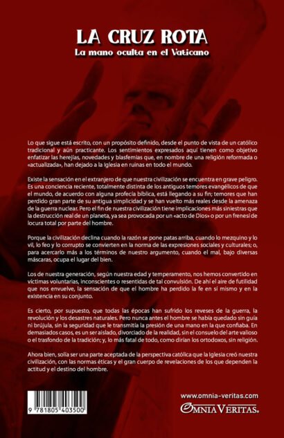 Ce qui suit est écrit, dans un but précis, du point de vue d’un catholique traditionnel et toujours pratiquant. Les sentiments exprimés ici ont pour but de souligner les hérésies, les nouveautés et les profanations qui, au nom d’une religion réformée ou actualisée , ont laissé l’Église en lambeaux à travers le monde. Il existe un sentiment général que notre civilisation est en danger mortel. Il s’agit d’une prise de conscience récente, tout à fait distincte des anciennes craintes évangéliques selon lesquelles le monde, conformément à certaines prophéties bibliques, touche à sa fin ; craintes qui ont perdu beaucoup de leur simplicité d’antan et sont devenues plus réelles depuis la menace d’une guerre nucléaire.