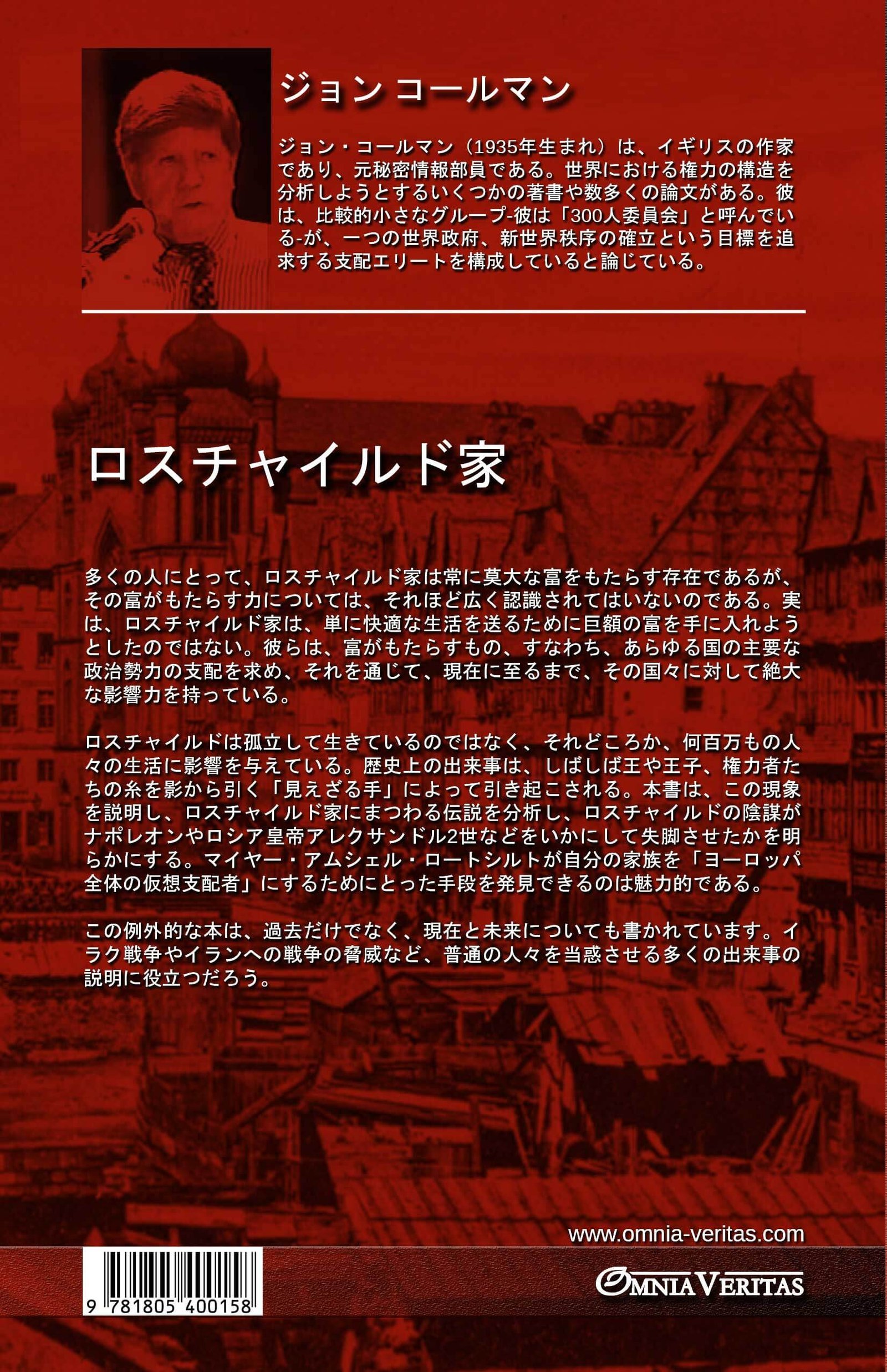 マイヤー・アムシェル・ロスチャイルドの「天才と金融技術」は息子たちに受け継がれたという伝説があるが、コールマン博士がこの研究で明らかにしたように、真実はまったく異なる。この本は、有名な一族の真の姿を隠す、よりよく知られた伝説をはるかに超えるものである。