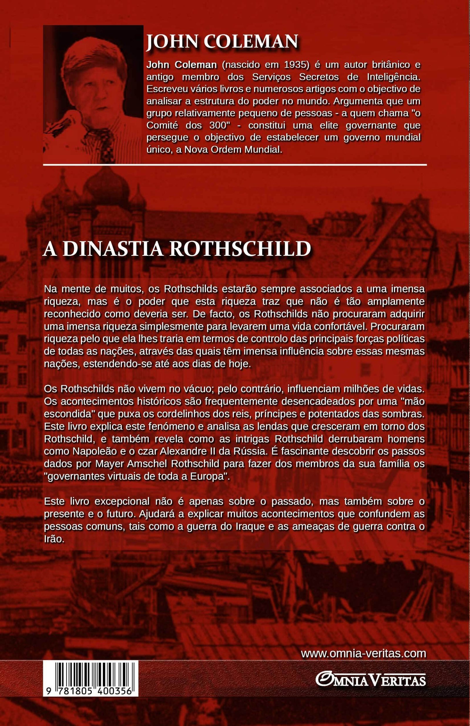 A lenda conta que Mayer Amschel Rothschild “genialidade e capacidade financeira” foram herdados pelos seus filhos, mas a verdade é bem diferente, como o Dr. Coleman deixa claro neste relato bem investigado que vai muito além das lendas mais conhecidas que escondem o verdadeiro carácter da famosa família.