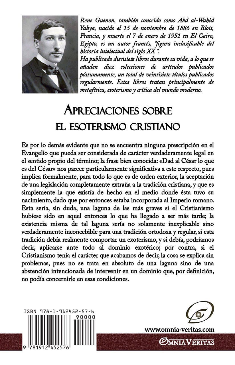 Esta sería, sin duda, una laguna de las más graves si el Cristianismo hubiese sido en aquel entonces lo que ha llegado a ser más tarde; la existencia misma de tal laguna sería no solamente inexplicable sino verdaderamente inconcebible para una tradición ortodoxa y regular, si esta tradición debía realmente comportar un exoterismo, y si debía, podríamos decir, aplicarse ante todo al dominio exotérico; por contra, si el Cristianismo tenía el carácter que acabamos de decir, la cosa se explica sin problemas, pues no se trata en absoluto de una laguna sino de una abstención intencionada de intervenir en un dominio que, por definición, no podía concernirle en esas condiciones.
