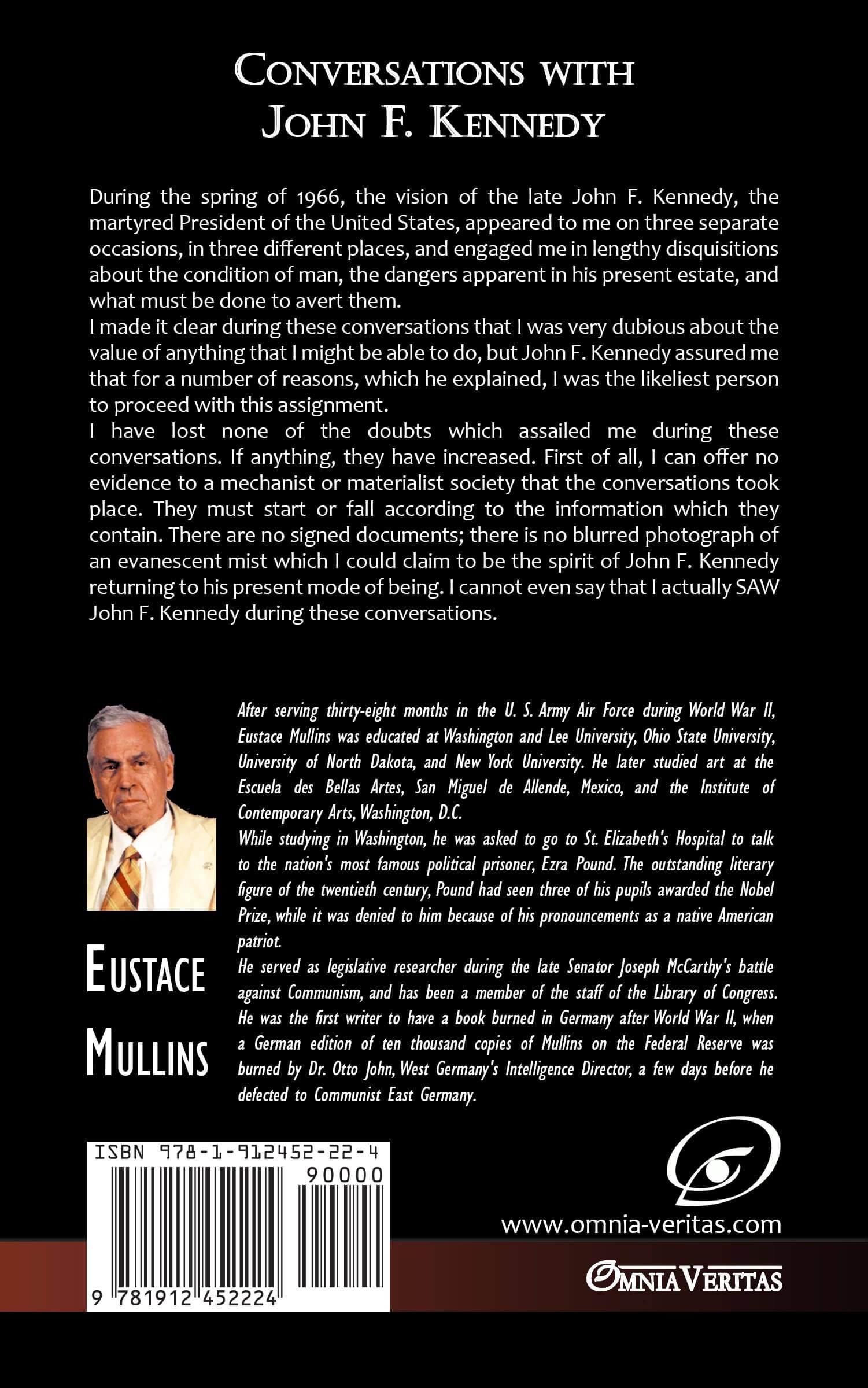 I have lost none of the doubts which assailed me during these conversations. If anything, they have increased. First of all, I can offer no evidence to a mechanist or materialist society that the conversations took place. They must start or fall according to the information which they contain. There are no signed documents; there is no blurred photograph of an evanescent mist which I could claim to be the spirit of John F. Kennedy returning to his present mode of being. I cannot even say that I actually SAW John F. Kennedy during these conversations.
