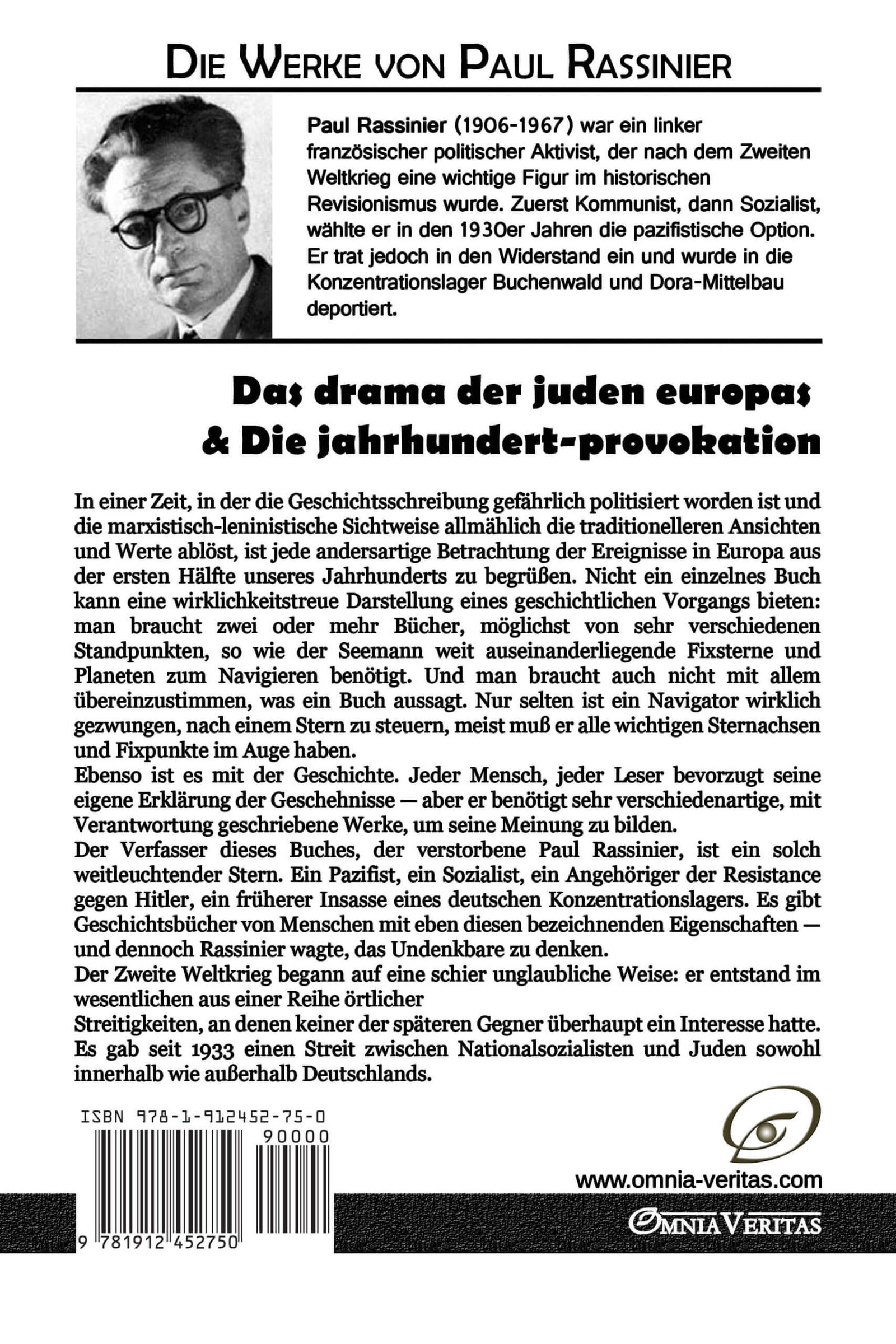 Der Verfasser dieses Buches, der verstorbene Paul Rassinier, ist ein solch weitleuchtender Stern. Ein Pazifist, ein Sozialist, ein Angehöriger der Resistance gegen Hitler, ein früherer Insasse eines deutschen Konzentrationslagers. Es gibt Geschichtsbücher von Menschen mit eben diesen bezeichnenden Eigenschaften — und dennoch Rassinier wagte, das Undenkbare zu denken.