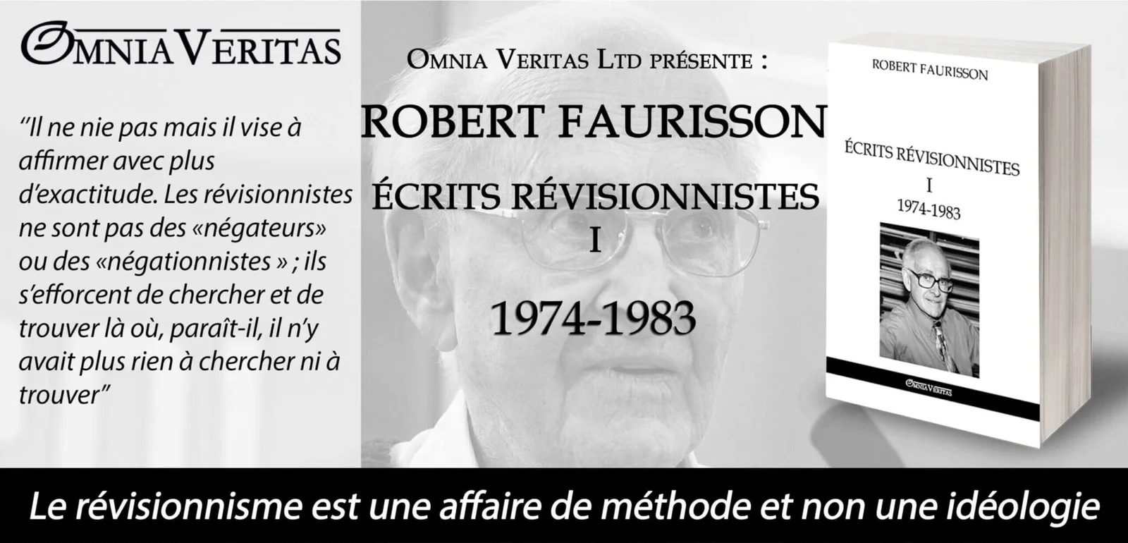 Au risque d’être mal compris par certains, je dédie cet ouvrage à ceux, parmi les vainqueurs ensanglantés de la seconde guerre mondiale, qui, tels Churchill, Eisenhower ou de Gaulle, se sont refusés, aussi bien pendant la bataille qu’après la bataille, à cautionner, ne fût-ce que d’un mot, l’atroce, la grotesque, l’insolente imposture du prétendu génocide des juifs et des prétendues chambres à gaz nazies.