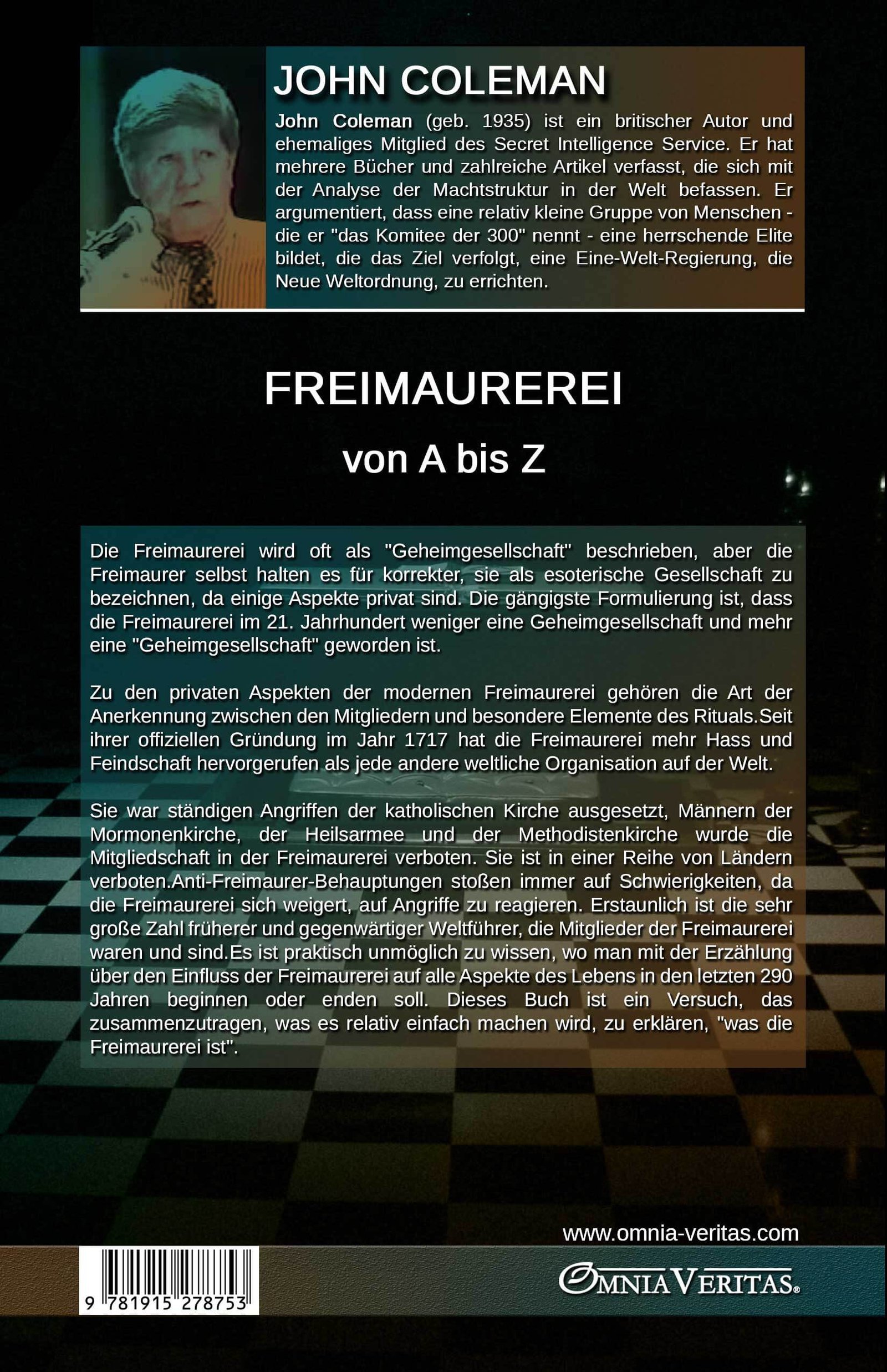 Sie war ständigen Angriffen der katholischen Kirche ausgesetzt, Männern der Mormonenkirche, der Heilsarmee und der Methodistenkirche wurde die Mitgliedschaft in der Freimaurerei verboten. Sie ist in einer Reihe von Ländern verboten.Anti-Freimaurer-Behauptungen stoßen immer auf Schwierigkeiten, da die Freimaurerei sich weigert, auf Angriffe zu reagieren. Erstaunlich ist die sehr große Zahl früherer und gegenwärtiger Weltführer, die Mitglieder der Freimaurerei waren und sind.Es ist praktisch unmöglich zu wissen, wo man mit der Erzählung über den Einfluss der Freimaurerei auf alle Aspekte des Lebens in den letzten 290 Jahren beginnen oder enden soll. Dieses Buch ist ein Versuch, das zusammenzutragen, was es relativ einfach machen wird, zu erklären, “was die Freimaurerei ist”.