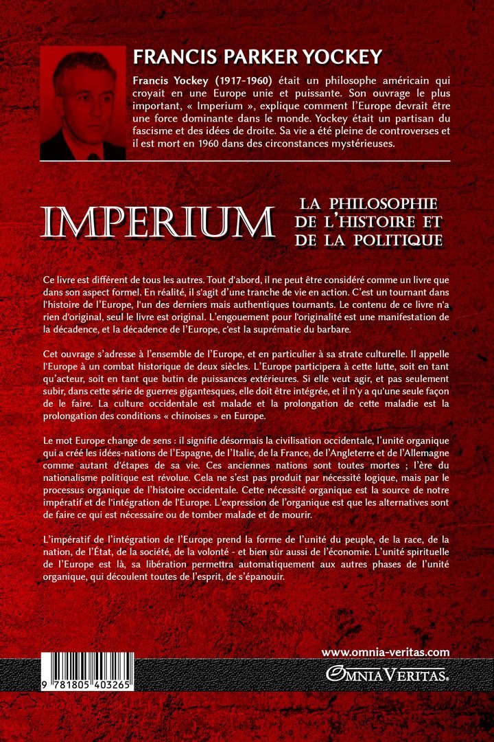 Cet ouvrage s’adresse à l’ensemble de l’Europe, et en particulier à sa strate culturelle. Il appelle l’Europe à un combat historique de deux siècles. L’Europe participera à cette lutte, soit en tant qu’acteur, soit en tant que butin de puissances extérieures. Si elle veut agir, et pas seulement subir, dans cette série de guerres gigantesques, elle doit être intégrée, et il n’y a qu’une seule façon de le faire. La culture occidentale est malade et la prolongation de cette maladie est la prolongation des conditions chinoises en Europe.