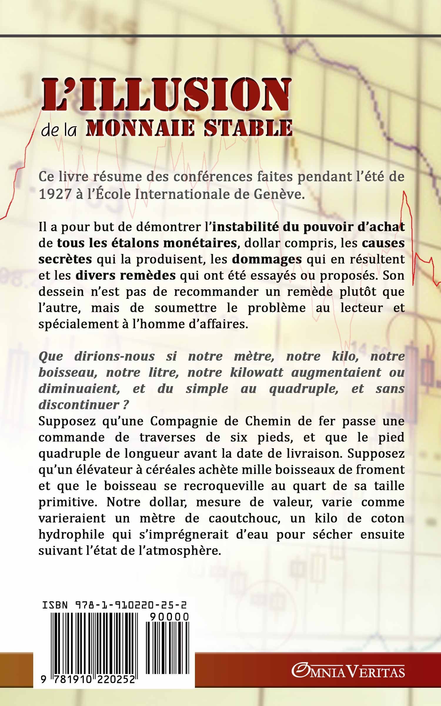 Supposez qu’un élévateur à céréales achète mille boisseaux de froment et que le boisseau se recroqueville au quart de sa taille primitive. Notre dollar, mesure de valeur, varie comme varieraient un mètre de caoutchouc, un kilo de coton hydrophile qui s’imprégnerait d’eau pour sécher ensuite suivant l’état de l’atmosphère.