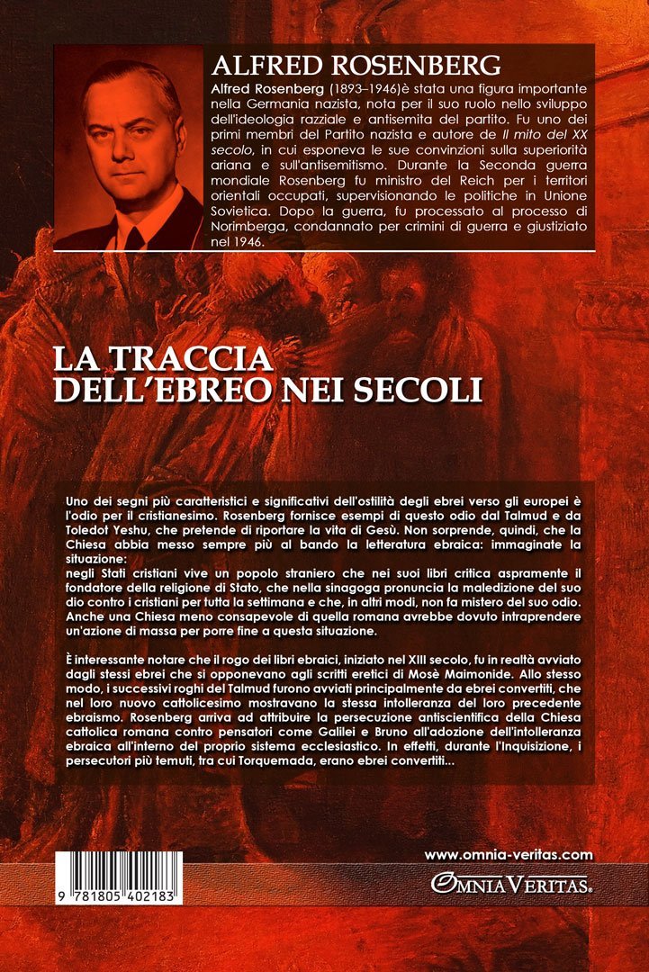 È interessante notare che il rogo dei libri ebraici, iniziato nel XIII secolo, fu in realtà avviato dagli stessi ebrei che si opponevano agli scritti eretici di Mosè Maimonide. Allo stesso modo, i successivi roghi del Talmud furono avviati principalmente da ebrei convertiti, che nel loro nuovo cattolicesimo mostravano la stessa intolleranza del loro precedente ebraismo. Rosenberg arriva ad attribuire la persecuzione antiscientifica della Chiesa cattolica romana contro pensatori come Galilei e Bruno all’adozione dell’intolleranza ebraica all’interno del proprio sistema ecclesiastico. In effetti, durante l’Inquisizione, i persecutori più temuti, tra cui Torquemada, erano ebrei convertiti…