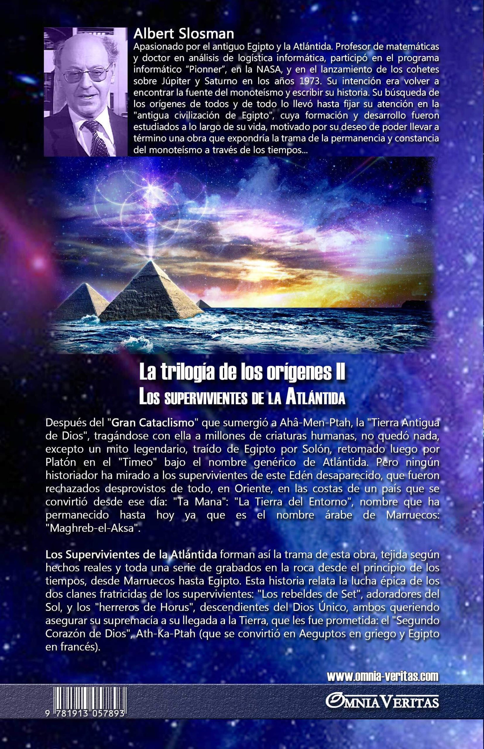 Los Supervivientes de la Atlántida forman así la trama de esta obra, tejida según hechos reales y toda una serie de grabados en la roca desde el principio de los tiempos, desde Marruecos hasta Egipto. Esta historia relata la lucha épica de los dos clanes fratricidas de los supervivientes: “Los rebeldes de Set”, adoradores del Sol, y los “herreros de Horus”, descendientes del Dios Único, ambos queriendo asegurar su supremacía a su llegada a la Tierra, que les fue prometida: el “Segundo Corazón de Dios”, Ath-Ka-Ptah (que se convirtió en Aeguptos en griego y Egipto en francés).