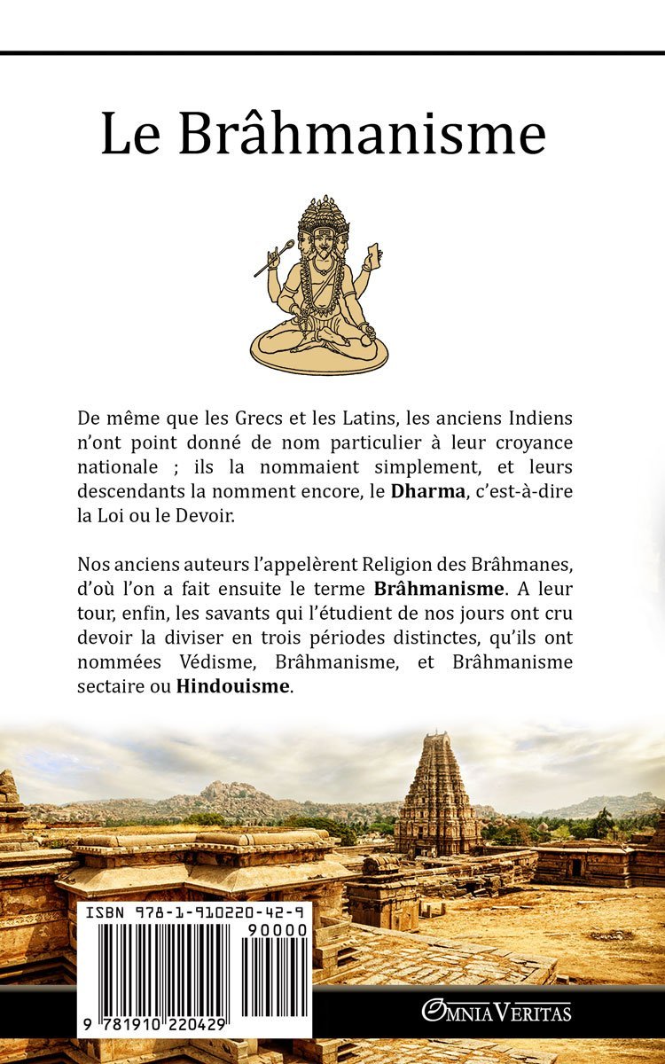 Bien que correspondant en effet à des modifications profondes, ces termes ont peut-être le double inconvénient d’être arbitraires – car il est impossible de tracer une ligne de démarcation nette entre les époques qu’ils représentent et d’induire à croire qu’il s’agit de trois religions différentes, tandis que ce sont de simples phases d’une seule et même religion évoluant insensiblement, sous l’influence de spéculations philosophiques, du naturalisme polythéiste au panthéisme sans rompre pour cela la chaîne des antiques traditions primitives, et comme l’un de ses traits caractéristiques saillants est la suprématie universelle de la caste sacerdotale des Brâhmanes, le nom de Brâhmanisme nous paraît convenir mieux que tout autre à cette croyance envisagée dans son ensemble.
