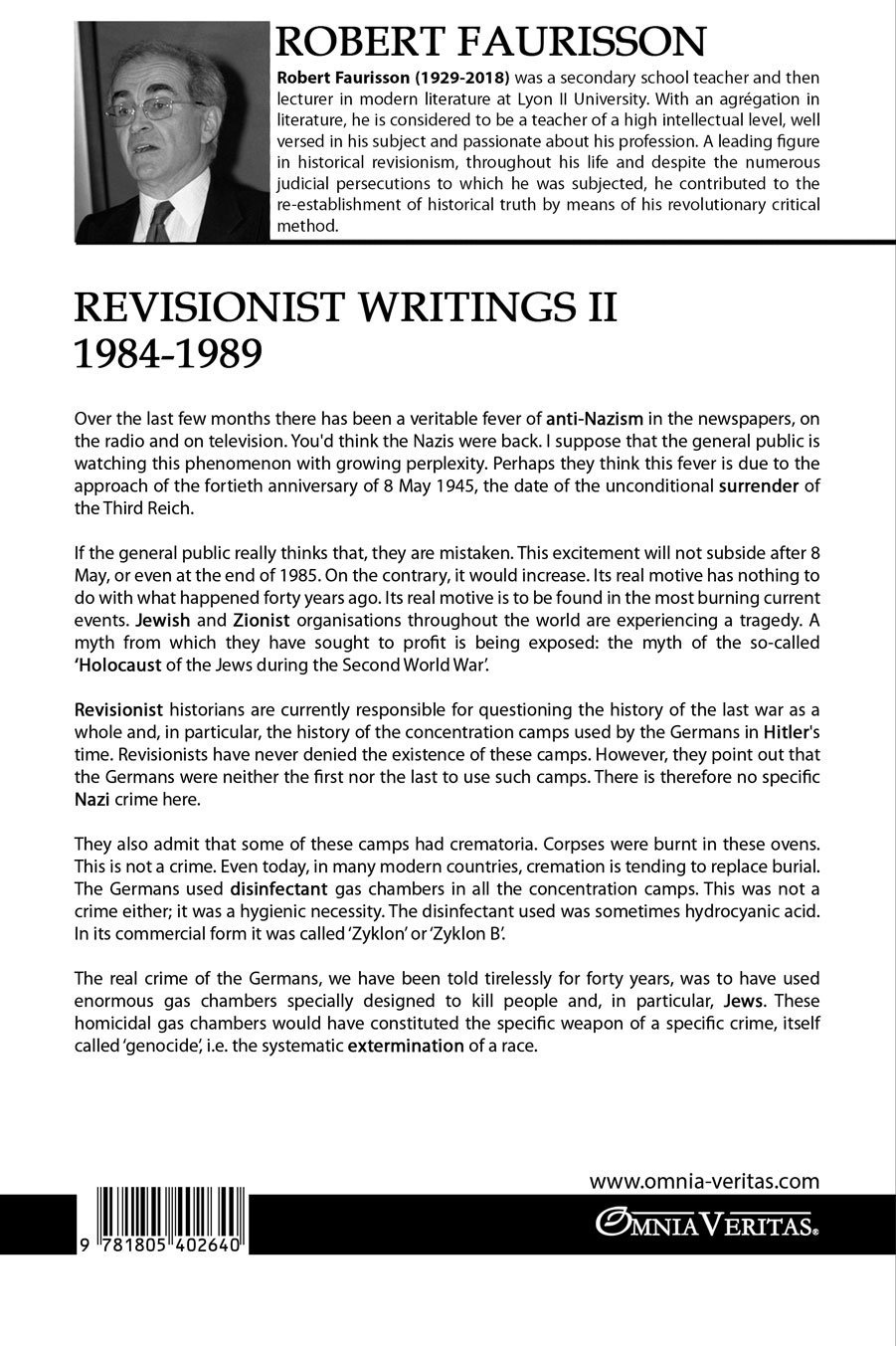 If the general public really thinks that, they are mistaken. This excitement will not subside after 8 May, or even at the end of 1985. On the contrary, it would increase. Its real motive has nothing to do with what happened forty years ago. Its real motive is to be found in the most burning current events. Jewish and Zionist organisations throughout the world are experiencing a tragedy. A myth from which they have sought to profit is being exposed: the myth of the so-called ‘Holocaust of the Jews during the Second World War’.