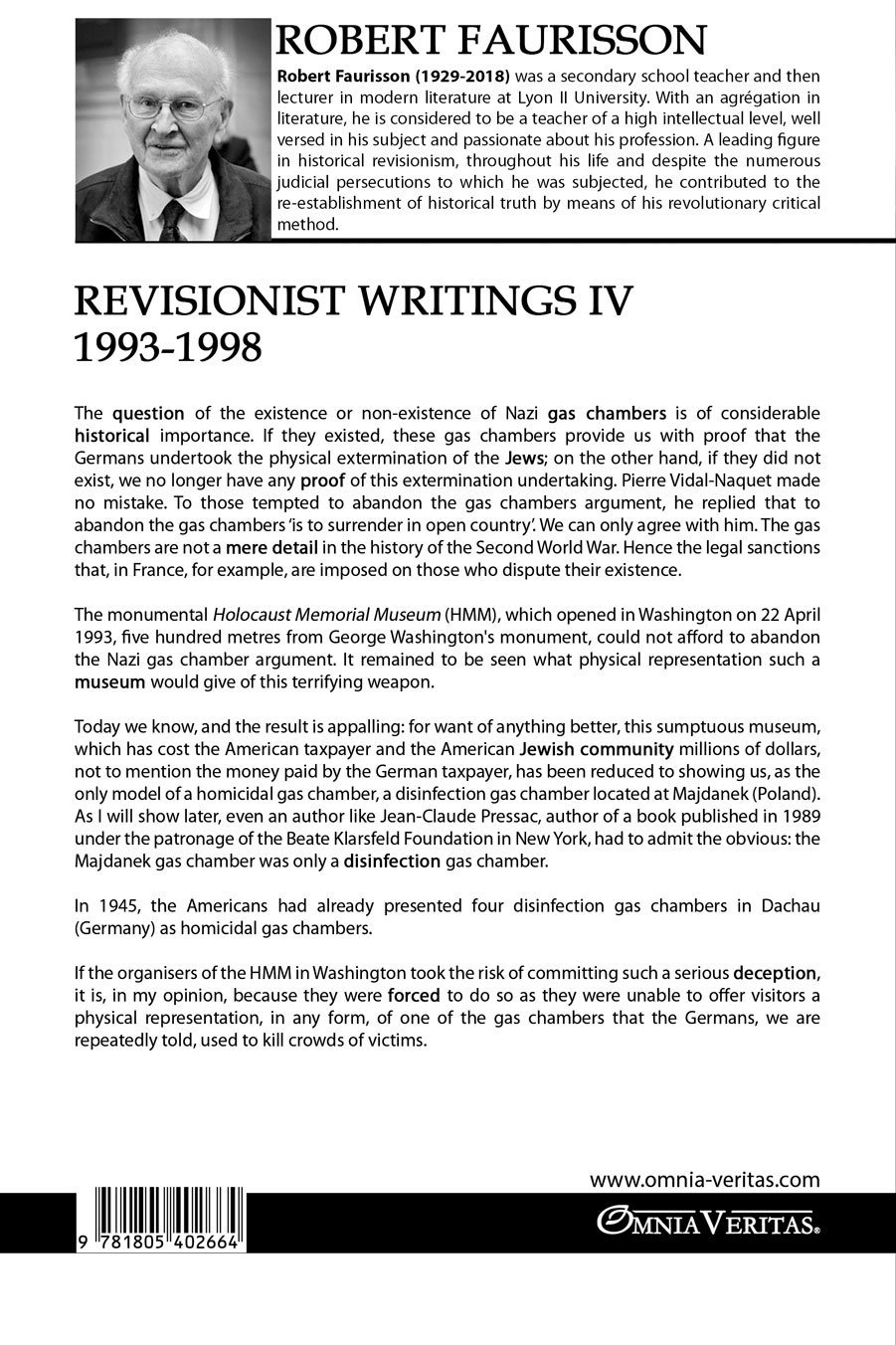 So the monumental Holocaust Memorial Museum (HMM), which was inaugurated in Washington on 22 April 1993, five hundred metres from the George Washington monument, could not afford to abandon the Nazi gas chamber argument. It remained to be seen what physical representation such a museum would give of this terrifying weapon.