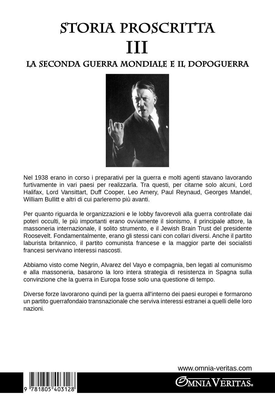 Nel 1938 erano in corso i preparativi per la guerra e molti agenti lavoravano furtivamente in vari Paesi per realizzarla. Tra questi, per citarne solo alcuni, Lord Halifax, Lord Vansittart, Duff Cooper, Leo Amery, Paul Reynaud, Georges Mandel, William Bullitt e altri di cui parleremo in seguito. Per quanto riguarda le organizzazioni e le lobby a favore della guerra controllate dai poteri ombra, le più importanti erano naturalmente il sionismo, l’attore principale, la massoneria internazionale, il solito strumento, e il Jewish Brain Trust del presidente Roosevelt.