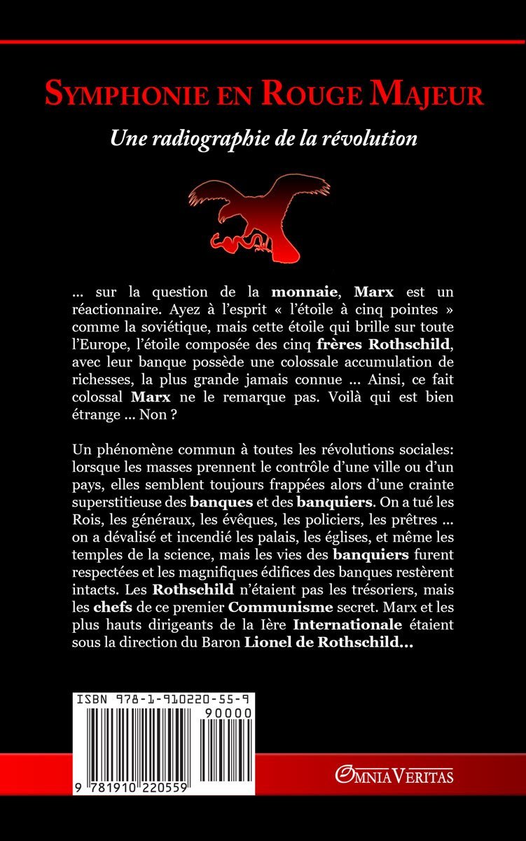 Il se peut que de cet étrange aveuglement de Marx naisse un phénomène qui est commun à toutes les futures révolutions sociales. Voici le fait : tous, nous pouvons confirmer que lorsque les masses prennent le contrôle d’une ville ou d’un pays, elles semblent toujours frappées alors d’une crainte superstitieuse des banques et des banquiers. On a tué les Rois, les généraux, les évêques, les policiers, les prêtres et les autres représentants des classes privilégiées haïes ; on a dévalisé et incendié les palais, les églises, et même les temples de la science, mais en dépit du fait que les révolutions étaient sociales, les vies des banquiers furent respectées par elles, et leur résultat fut que les magnifiques édifices des banques restèrent intacts. Les Rothschild n’étaient pas les trésoriers, mais les chefs de ce premier Communisme secret.