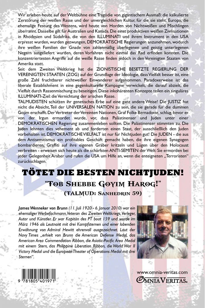 Seit dem Zweiten Weltkrieg hat die ZIONIST OCCUPIED GOVERNMENT OF THE UNITED STATES (ZOG) eine große Anzahl fruchtbarer nichtweißer Einwanderer willkommen geheißen, basierend auf der Ideologie, dass Vielfalt besser ist. Paradoxerweise ist das LIBERALE Establishment in eine Gegenkulturkampagne verwickelt, die darauf abzielt, Vielfalt durch Rassenmischung zu beseitigen. Diese widersprüchlichen Konzepte haben ein einziges Ziel der ILLUMINATI gemeinsam – die Zerstörung der arischen Rasse.