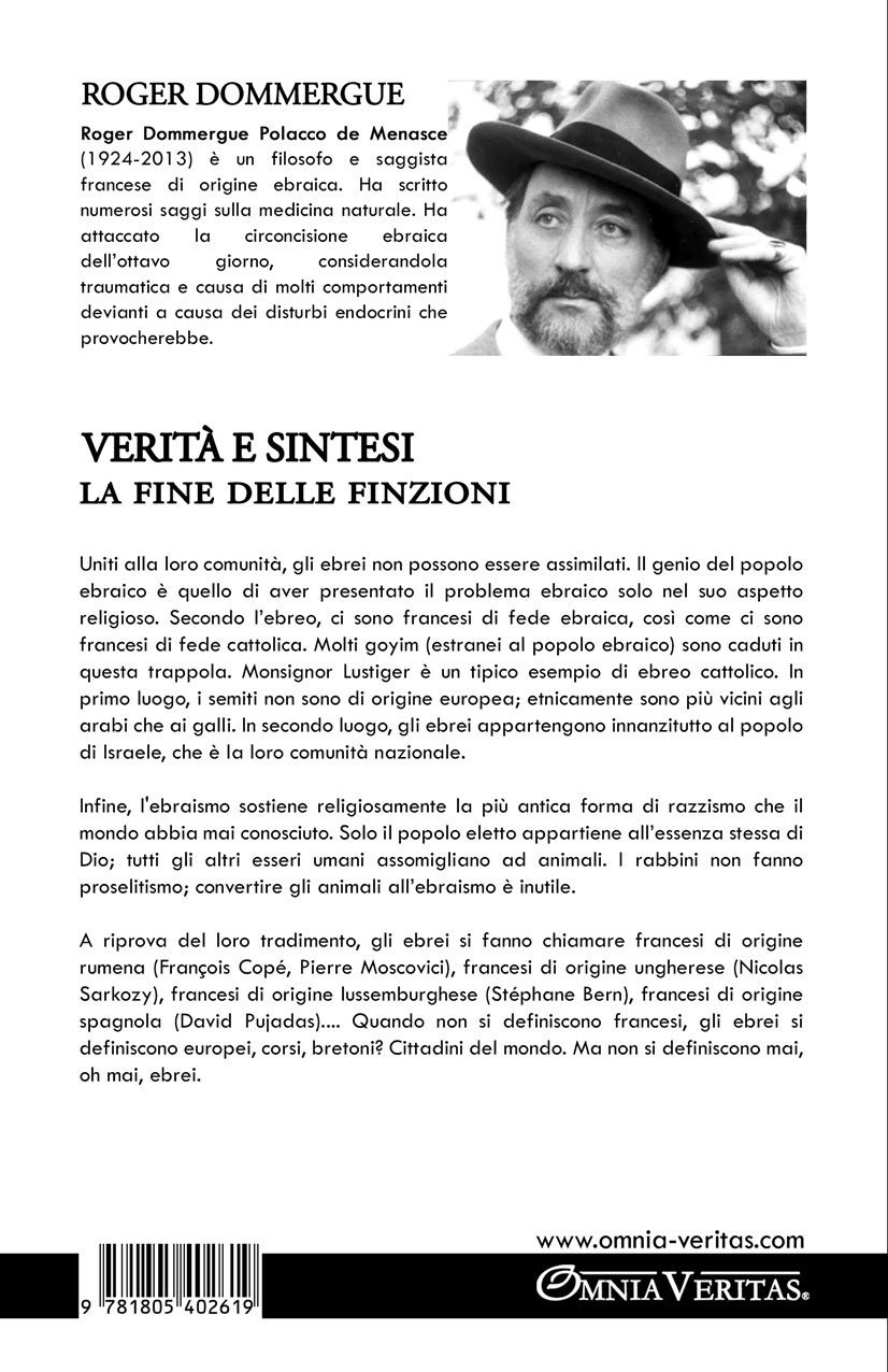 Infine, l’ebraismo approva religiosamente la più antica forma di razzismo che il mondo abbia mai conosciuto. Solo il popolo eletto appartiene all’essenza stessa di Dio; tutti gli altri esseri umani sono paragonati agli animali. I rabbini non fanno proseliti, convertire gli animali all’ebraismo è inutile. A riprova del suo tradimento, l’ebreo si fa chiamare francese di origine rumena (François Copé, Pierre Moscovici), francese di origine ungherese (Nicolas Sarkozy), francese di origine lussemburghese (Stéphane Bern), francese di origine spagnola (David Pujadas)… Quando non si definiscono francesi, gli ebrei si definiscono europei, corsi, bretoni… Un cittadino del mondo. Ma mai, oh mai, si definiscono ebrei.